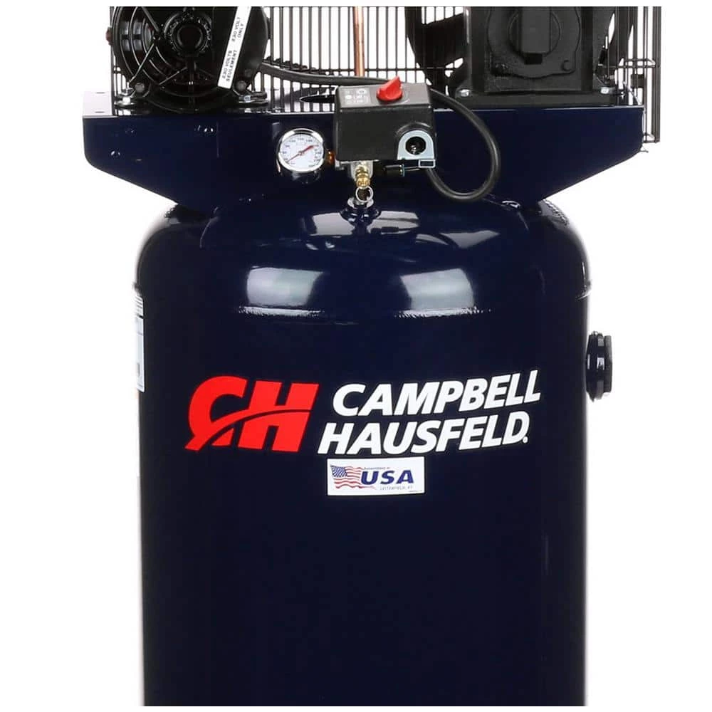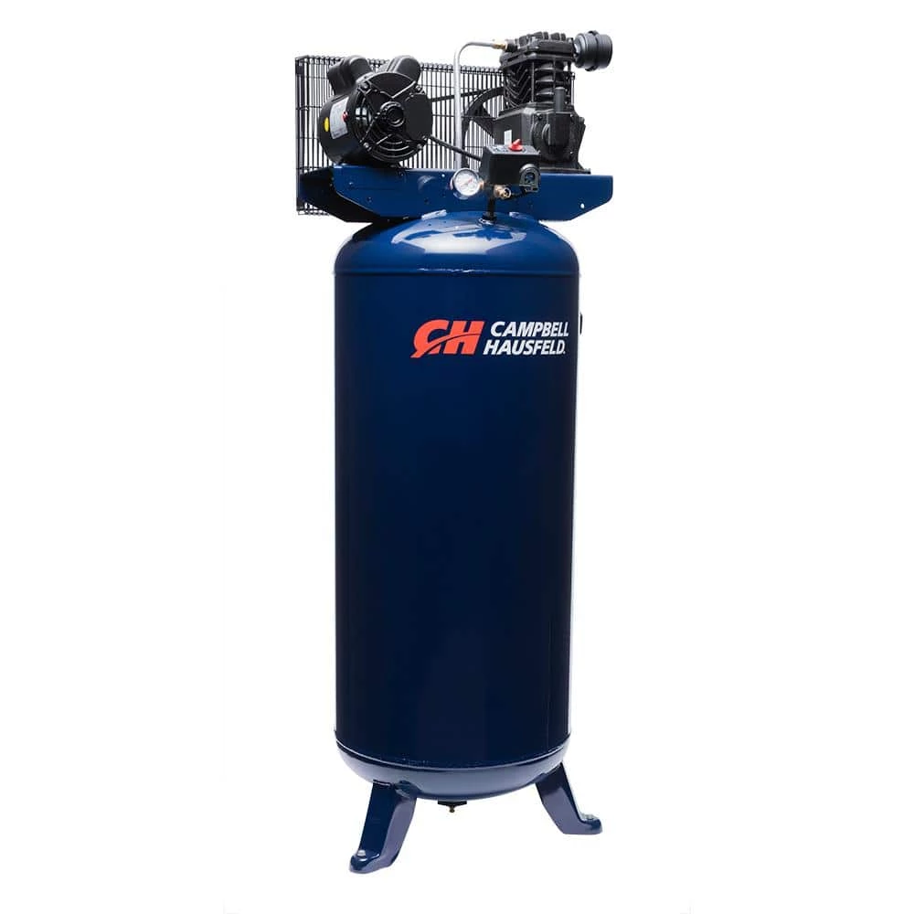 The Campbell Hausfeld 60-Gal., 3.7 HP, vertical air compressor (VT6195) is ideal for a small shop, automotive enthusiast or serious DIY user. This compressor has high air flow of 10.2 CFM @ 90 PSI and a maximum 135 PSI to power a wide variety of air tools for grinding, sanding or painting. The heavy-duty, cast-iron, two-cylinder pump is oil lubricated for a long life. The durable, 60-Gal., ASME-certified tank is a vertical design for space saving in the shop or garage.