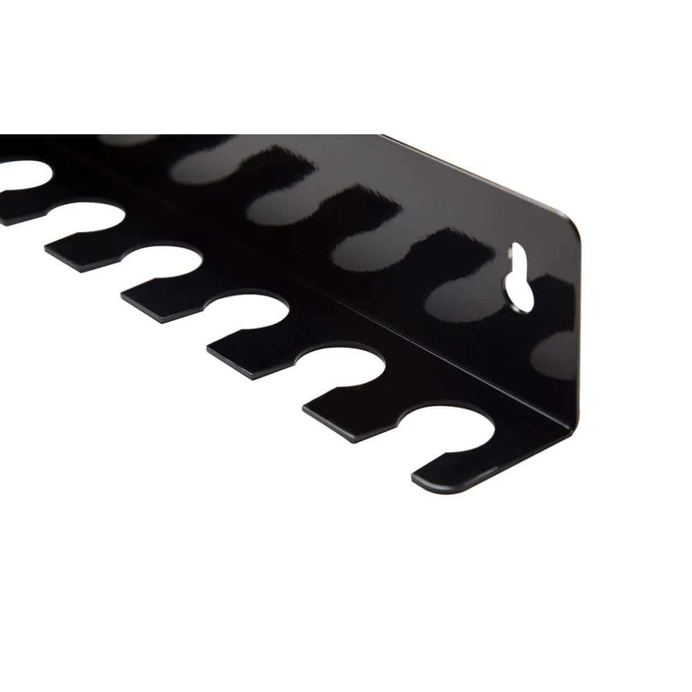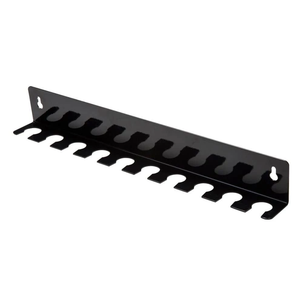 Keep your torque sticks, socket extensions, torque wrench, and other tools organized with the Steelman 50078 10-Piece Wall-Mounted Tool Storage Rack. The stamped metal rack is designed to hold a selection of your favorite, most heavily-used tools near at hand for convenience and speed. The specially shaped cutouts are shaped so that held extension bars, torque sticks, and other tools are suspended with size callouts and other identifying markings clearly visible. Two mounting holes allow you to hang this 10-Inch long rack anywhere you need in the shop. The powder-coated black finish is durable and resists rusting, chipping, and fading.