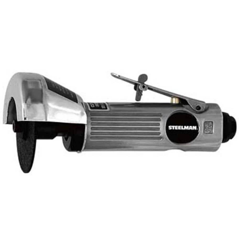 The Steelman 1526A Cut-Off Tool with Metal Guard is an ideal tool when the job facing you requires heavy-duty cutting power. With a maximum free run speed of 20,000 RPM this pneumatic tool will slice through metal stock, rebar, bolts, pipes and straps faster than any hacksaw ever could. When not in use a safety trigger lock on the lever style tease-trigger prevents against accidental startups yet won’t impair easy use and a chrome plated protective guard keeps you safe from flying debris and sparks during use. You don’t have to worry about the exhaust blowing debris and shavings across the work area either as this grinding cutter redirects the exhaust back away from the cutting area. The built-in regulator allows for variable speed control through the trigger and operates on a mere 4 cu. ft. per minute of 90 psi compressed air. Threaded to accept a conventional 1/4 in. NPT air inlet to connect it to a 3/8 in. air hose this tool is compact at only 8 in. L and weighing 1.85 lbs.
