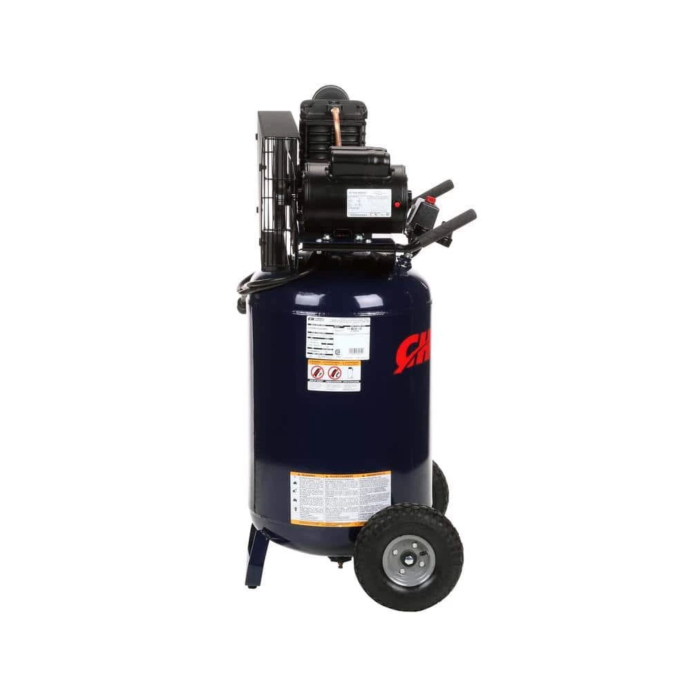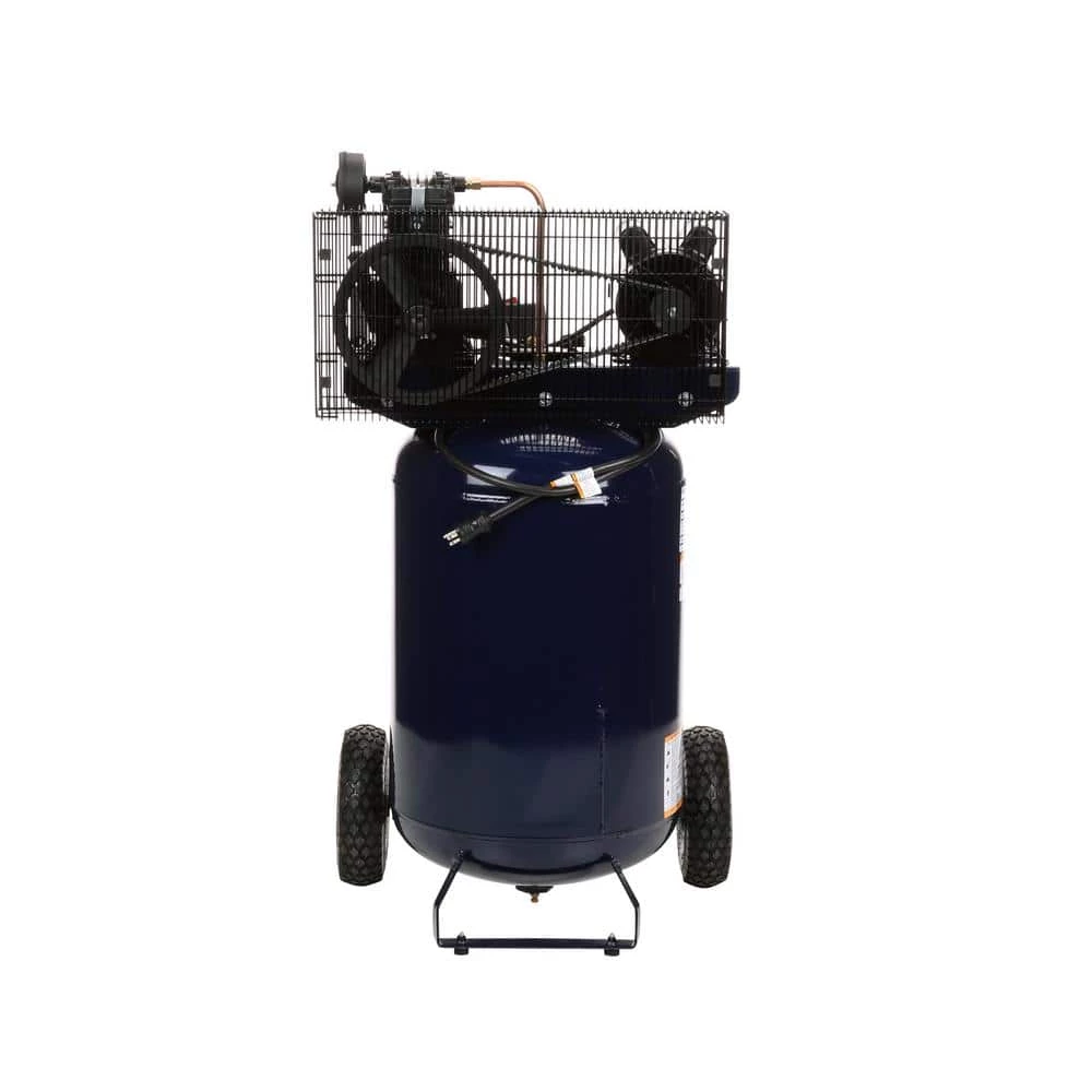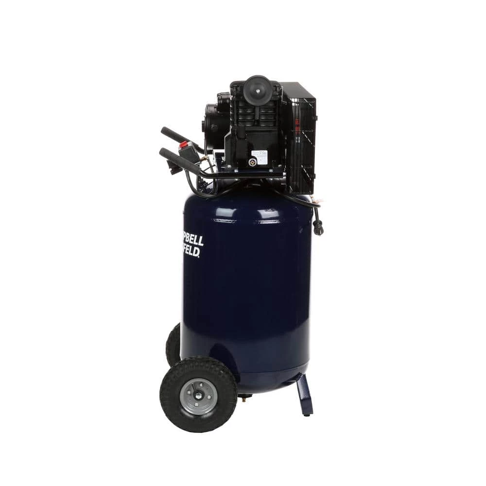 The Campbell Hausfeld 30 Gal. 2-HP, horizontal, portable air compressor (VT6358) can power a variety of air tools for the serious DIY user, professional or contractor. With a dual-voltage motor that can operate on either 120-Volt or 240-Volt current, this versatile air compressor can work in more locations. The large semi-pneumatic wheels make this unit easy to move from 1 job to the next. Designed for quiet operation, the heavy-duty, cast-iron, 2-cylinder pump is oil lubricated for a long life and delivers 5.5 CFM at 90 PSI with a maximum psi of 135. Finish your projects faster and easier with Campbell Hausfeld – The Air Power Expert.