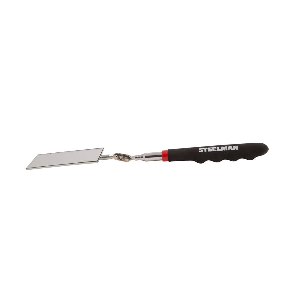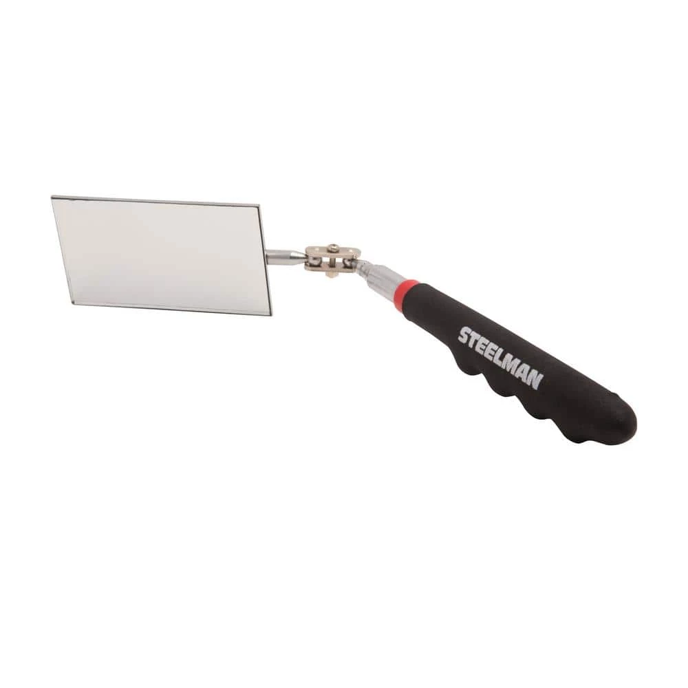 The Steelman 41817 30 in. Telescoping 2 in. x 3.5 in. Inspection Mirror is the ideal tool for when you need to look into tight and recessed areas. With the mirror unfolded the tool is a short 7 in. L that can then extend out to 30 in. or anything in between. The double-ball articulated mirror is rectangular and measures 2 in. W x 3.5 in. L and can swivel 360° to allow you to look at any angle. This enables you to easily perform inspections on HVAC systems, automotive engine compartments and undercarriages, not to mention using it around the house to find things under beds, behind bookcases, and other hard-to-see places. When done this durable, telescoping steel tool collapses and folds down to 7 in. in size and can be easily stowed away until it is once more needed.
