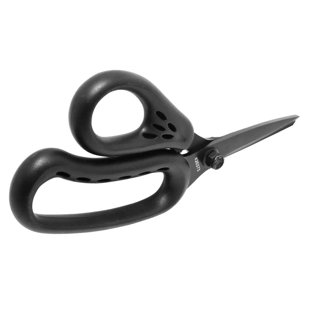 The CLAUSS Black Line Titanium Carbide shears are the first shears of its kind made with a Titanium carbide edge. Designed for the toughest tasks, the carbide edge provides the user with superior edge retention and durability over regular industrial shears. The Grip and Cut serrated blades ensure precision cutting with many substrates including – Kevlar, fabrics, plastics, rubber, leather, corrugate and rope. The oversized bows are designed to provide increased leverage and comfort while making cuts. The larger bows are great for use when wearing gloves.