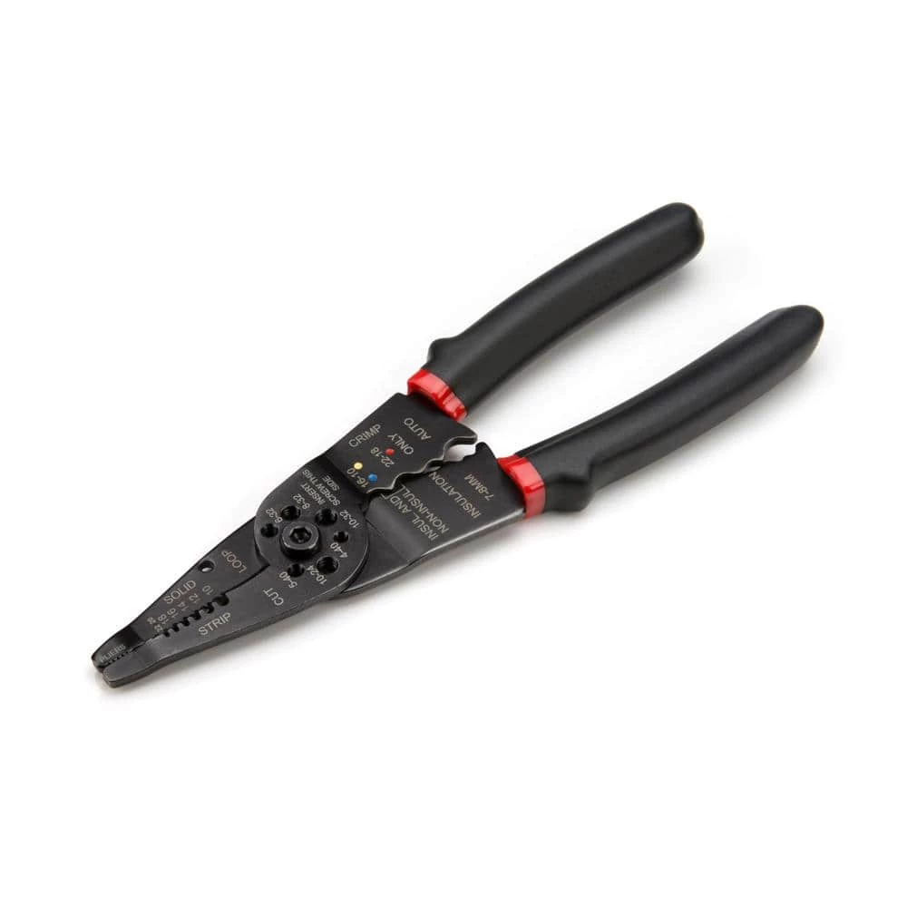 - Multi-purpose wiring tool- all purpose electrical wiring tool features pliers-type nose, crimper, wire stripper, screw shearer, and a looping hole