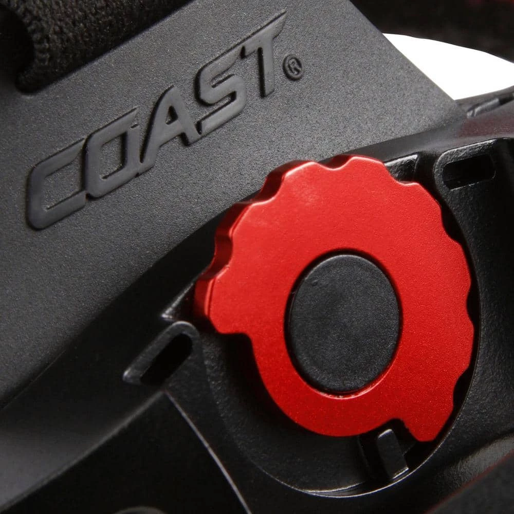 - Light control wheel: Dial in your light output. Coast’s patent-pending variable light-control system puts you in control of your headlamp’s beam intensity, with a rotating sensor knob that detects a magnetic field inside the headlamp bezel