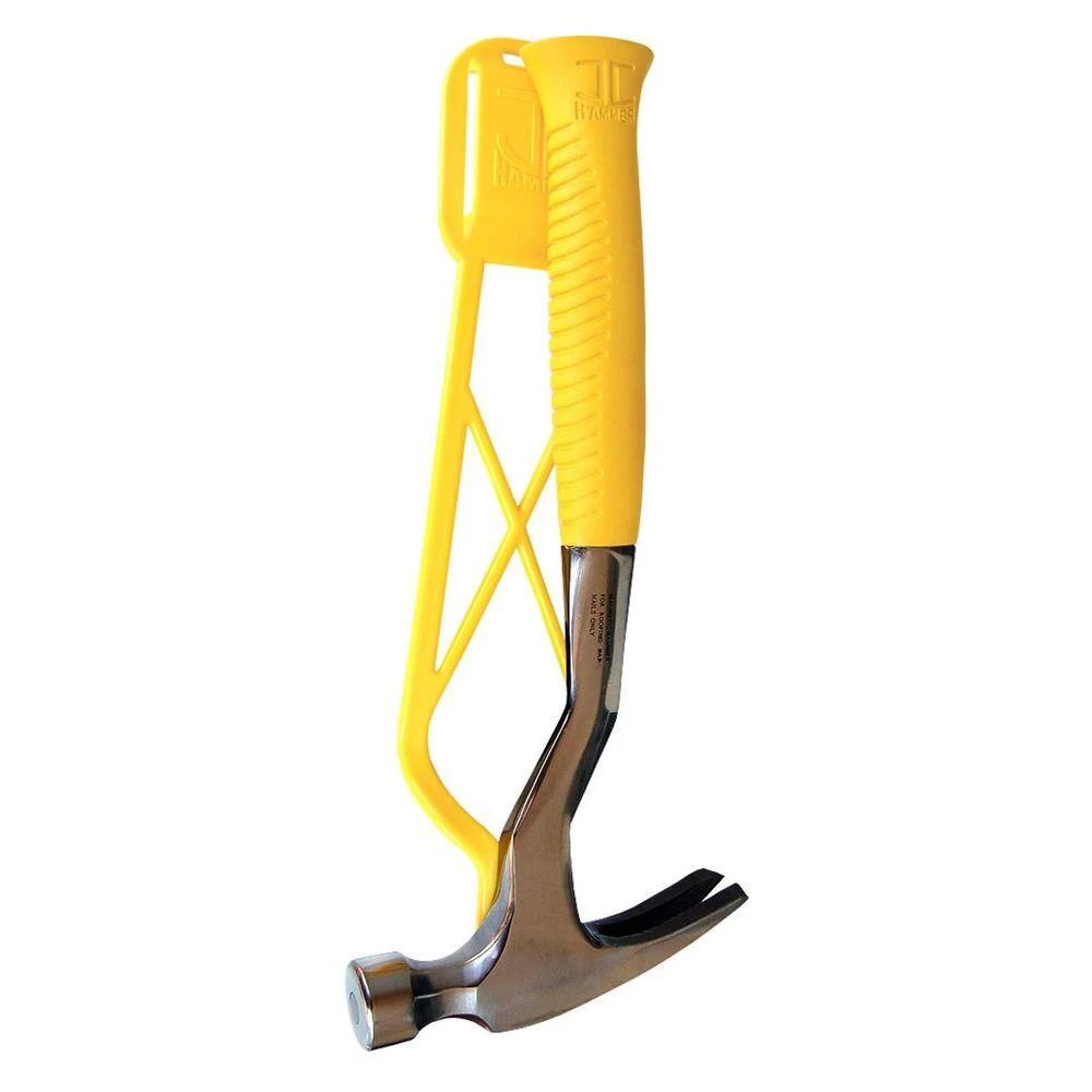 JC Hammer’s magnetic hammer with easy holder comes with a heavy duty magnet, slip resistant handle and angled shaft. The angled shaft reduces vibration and hand injuries. Combined with the easy grab, Easy Holder this high performance hammer is a snap to use and stow. Although designed for use in the roofing industry this durable hammer is popular with craftsmen and perfect for home projects. Should be used with plastic and metal cap, nails only. Ideal for the installation of roof dry-in underlayment’s house wrap, sheet metal and drywall. The unique design and durable steel construction make this hammer a versatile and valued tool.