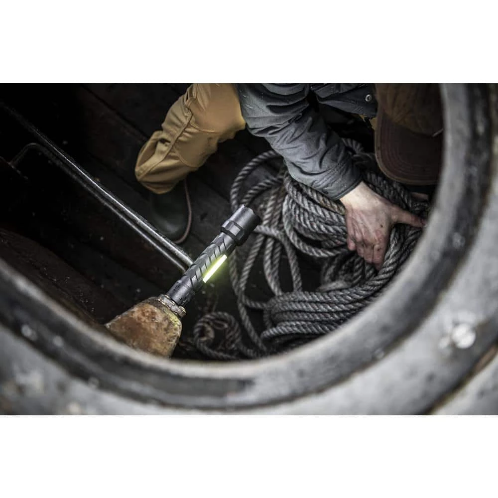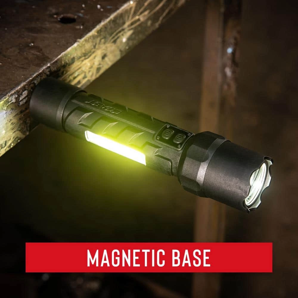 Pack versatile lighting wherever life goes-with an optional upgrade to rechargeable power. The stormproof, drop proof, and dust proof COAST PS700 features a magnetic tail cap for easy positioning and a twist-focusing main optic supported by two ultra-bright, handle-mounted COBs with solid and flashing modes in both white and red. Staying prepared, especially in wet environments, demands a utility flashlight that meets diverse circumstances with versatile power. With COAST’s ALKALINE DUAL POWER system, the PS700 offers the convenience of alkaline batteries (4 X AA) and the cost efficiency of a COAST ZITHION-X rechargeable battery pack (sold separately) so you are never without your light. The PS700 matches durability with dynamic lighting options so that professionals and home users are always ready. The magnetic tail cap makes it easy to affix the light to metallic surfaces for hands-free, directional lighting from the twist-focusing flood-to-spot main beam. And with seven unique light modes-including red and red flashing from the COBs on the handle-the light can become an emergency signal attached to a car or other metallic surface in an emergency. Whether on the job, around the home, or out on the road, this flashlight is the always-ready solution.