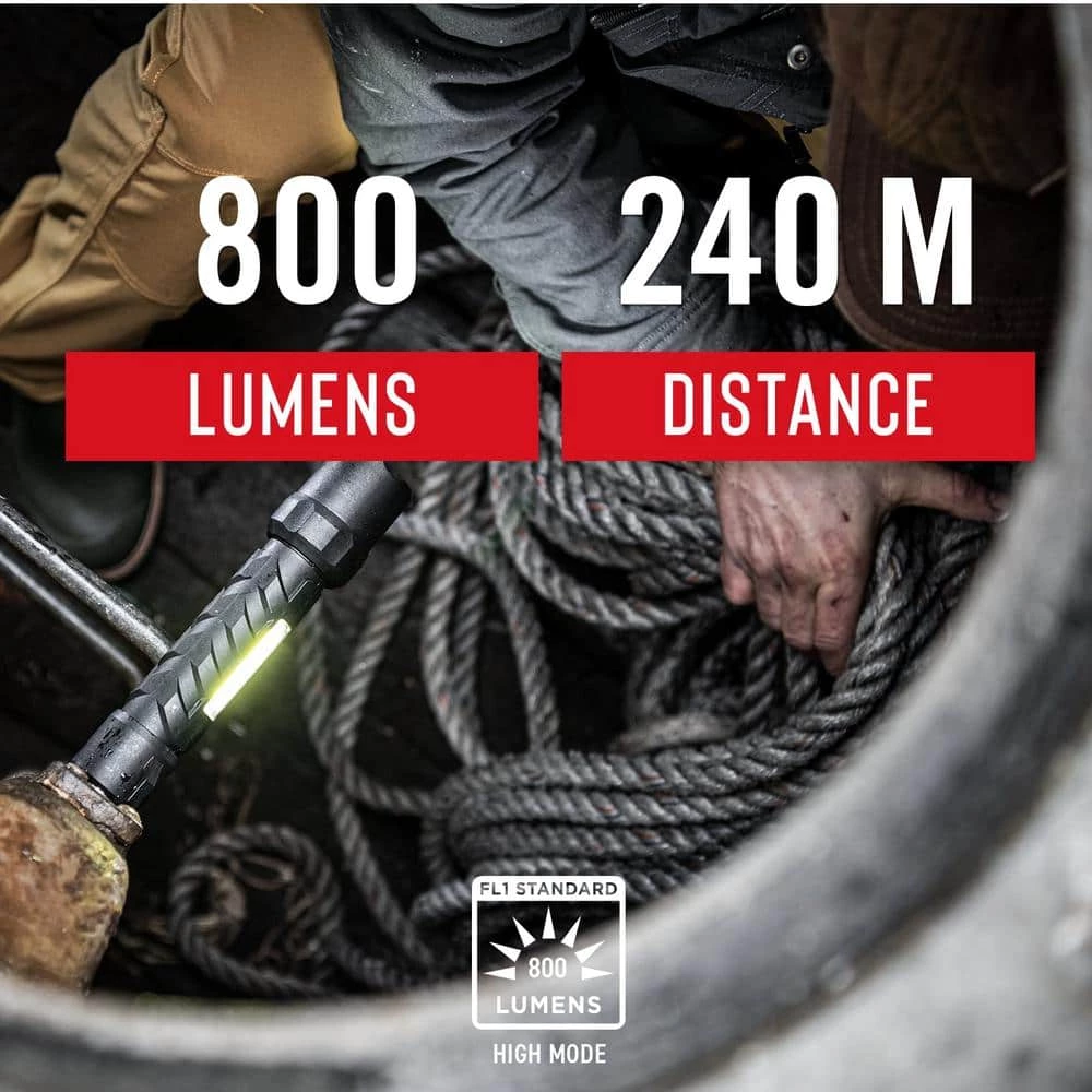 - SPECS: light output 800 lumens (high), 105 lumens (low). beam distance: 260 meters (high), 90 meters (low). runtime: 3 hours 30 minutes (high), 40 hours (low). tested and rated to ansi/fl1 standards.
