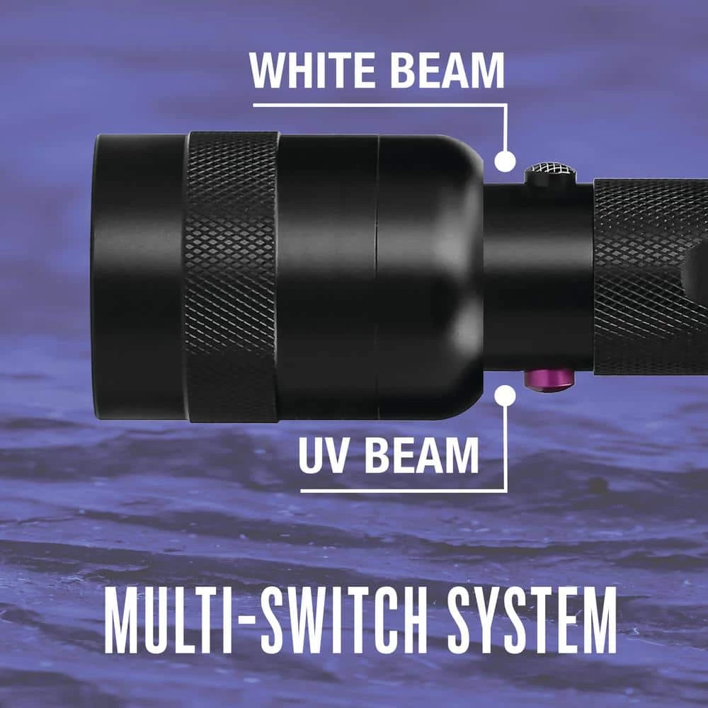 - Dual color (UV and white beam): see beneath the surface, the dual-color white and UV beam combines an all-white utility beam for general use with a UV light for detecting fluid leaks or checking security features on currency and identification cards