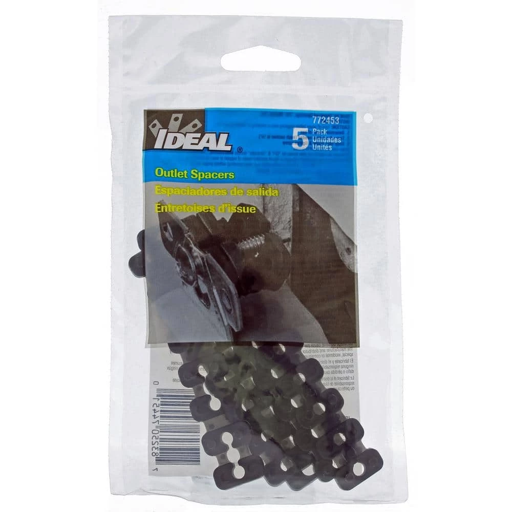 The IDEAL Spacers are perfect for supporting loose outlets and preventing faceplates from being broken. These spacers help eliminate the need to cut plate screws for GFCI decorator devices when they are installed on tile and marble and can also be used as shims. Tear apart Spacers caterpillar together to create desired shim depth.